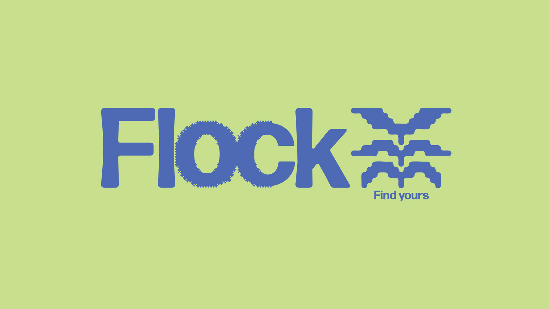 Flock’s logo is inspired by the unique flocking formation of starlings called ‘murmuration’. When starling’s murmurate, they fly in intricate patterns to form a united whirling mass in the sky. The typographic effect on the ‘o’ and ‘c’ mimics this, as though thousands of tiny birds are forming the letters. The pictorial mark complements the type, forming a stack of flocking birds. Stacked together, the birds resemble a sprouting plant—forever growing and flourishing in their community.